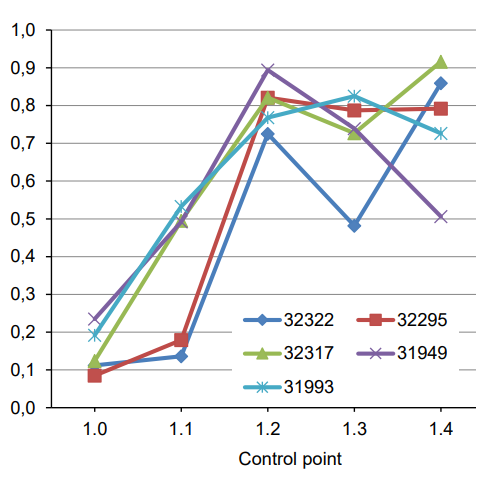 | 14 | 7,0 ± 1,2 | 13,0 ± 1,7 | 41,7 ±9,5 |