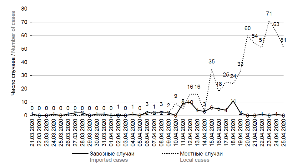 Рис. 2. Число завозных и местных случаев новой коронавирусной инфекции в РО.