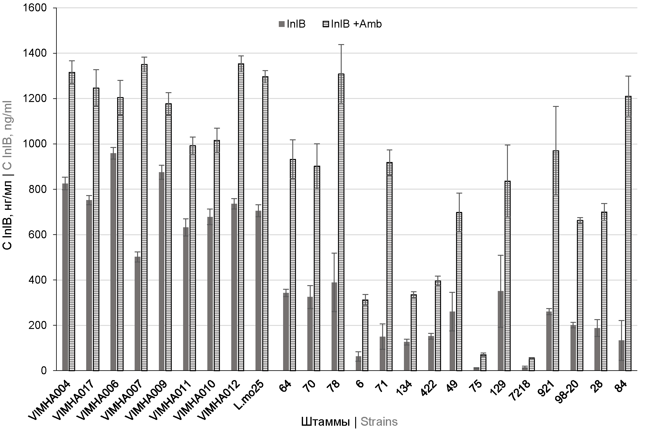 Analysis of production levels of InlA and InlB invasion factors in Listeria monocytogenes isolates collected in the Russian Federation