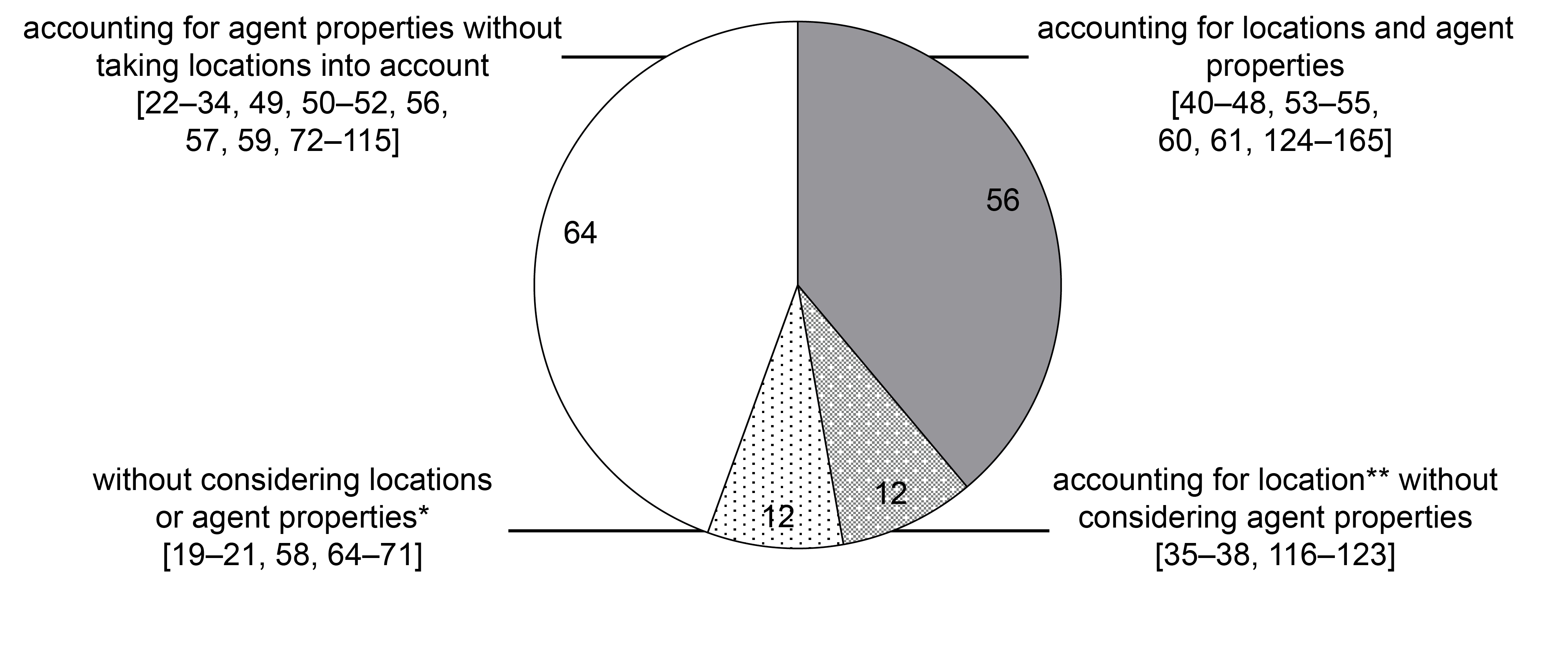 Approaches to creating an AP that takes into account properties of agents without considering locations (64 studies)