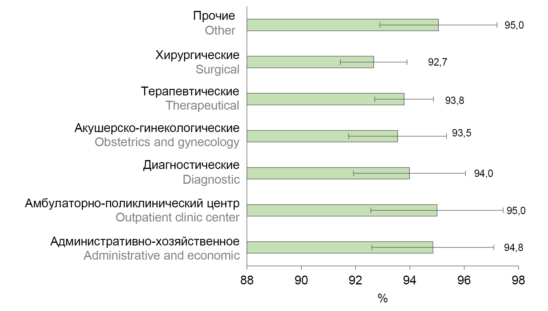 Fig. 3. The proportion of VZV seropositive healthcare workers in various departments of a multidisciplinary hospital in Moscow.