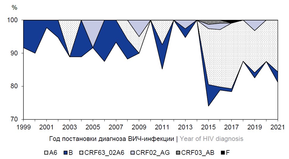 For such studies, the key factor is the “sampling density” of HIV-infected persons, i.e. the proportion of persons for whom the nucleotide sequence of HIV-1 is known among all identified PLHIV in the region under study. If the “sample density” is less than 10%, the reliability and accuracy of the results obtained are significantly reduced [13].