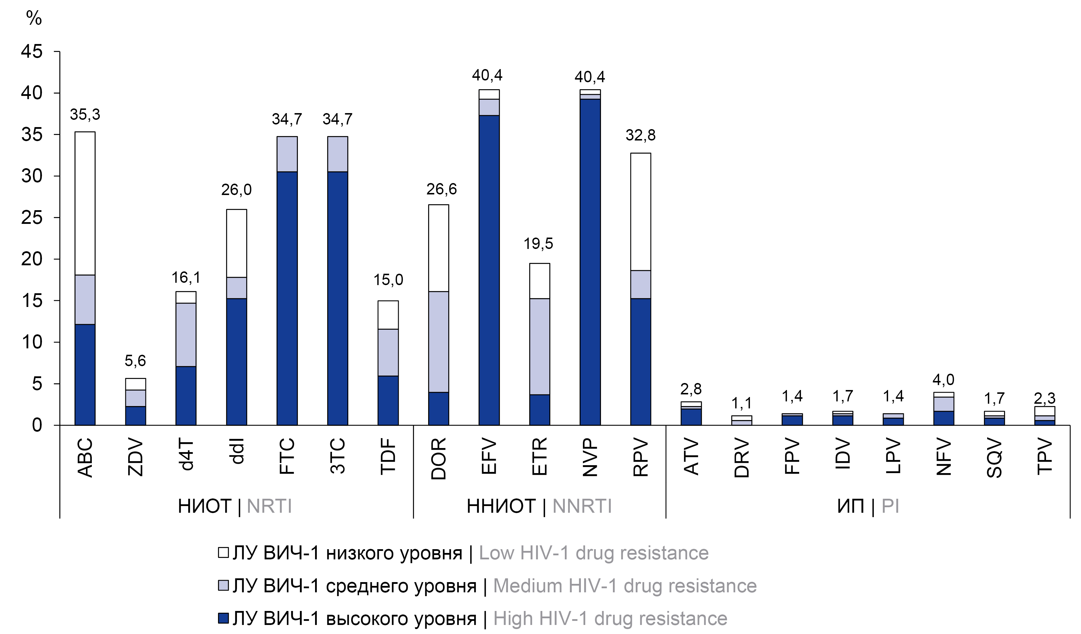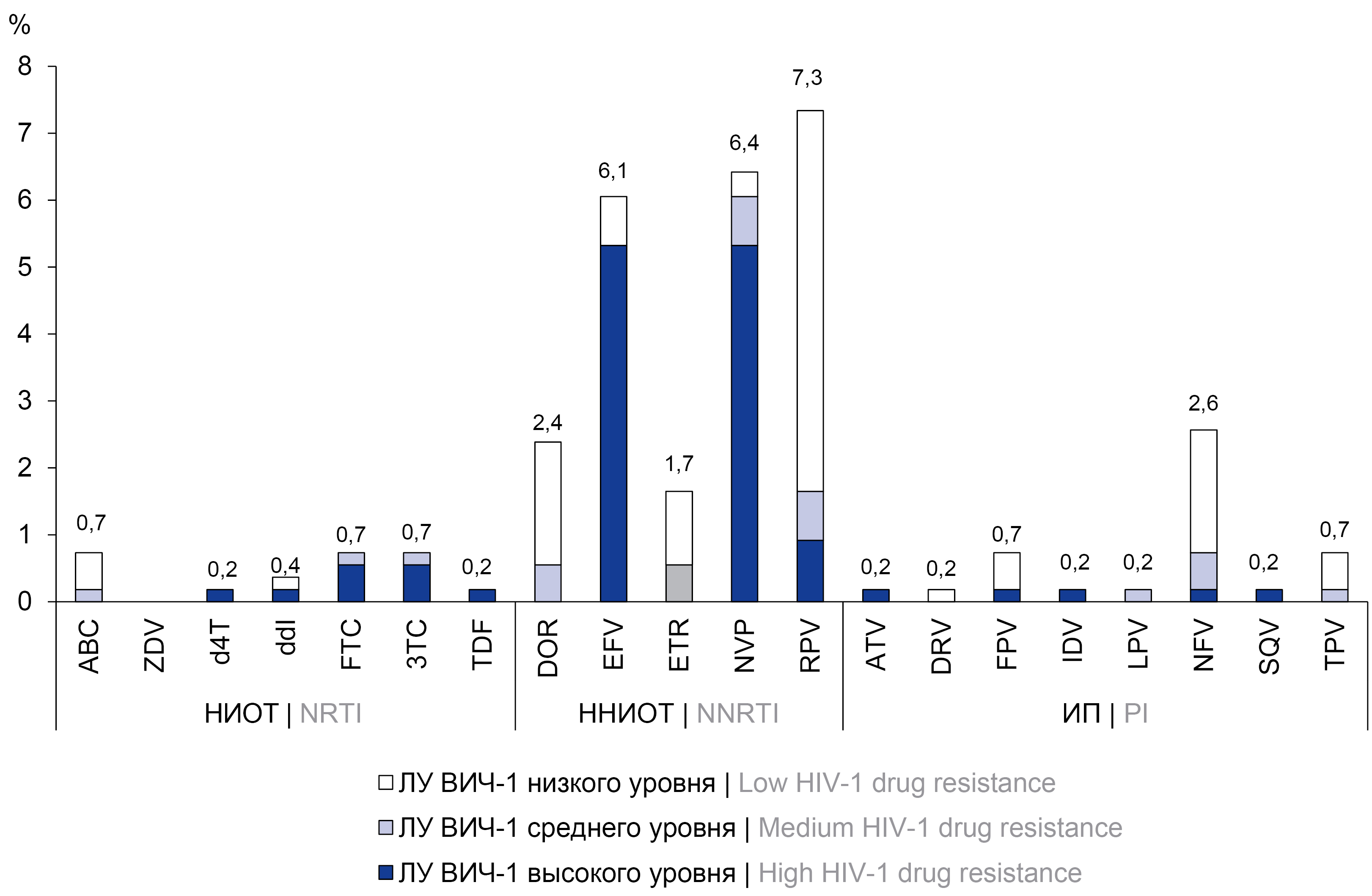 Widespread use of antiretroviral therapy (ART) significantly reduces morbidity and mortality of people living with HIV (PLHIV) [1, 2], as well as the risk of HIV transmission [3, 4]. However, the expansion of ART coverage in HIV-infected patients inevitably leads to the emergence and spread of drug resistance (DR) of the virus, which jeopardizes the efficacy of ART [5, 6]. At least 20% of HIV-infected patients1 in Russia annually experience virologic failure of ART, the main cause of which is HIV-1 DR.