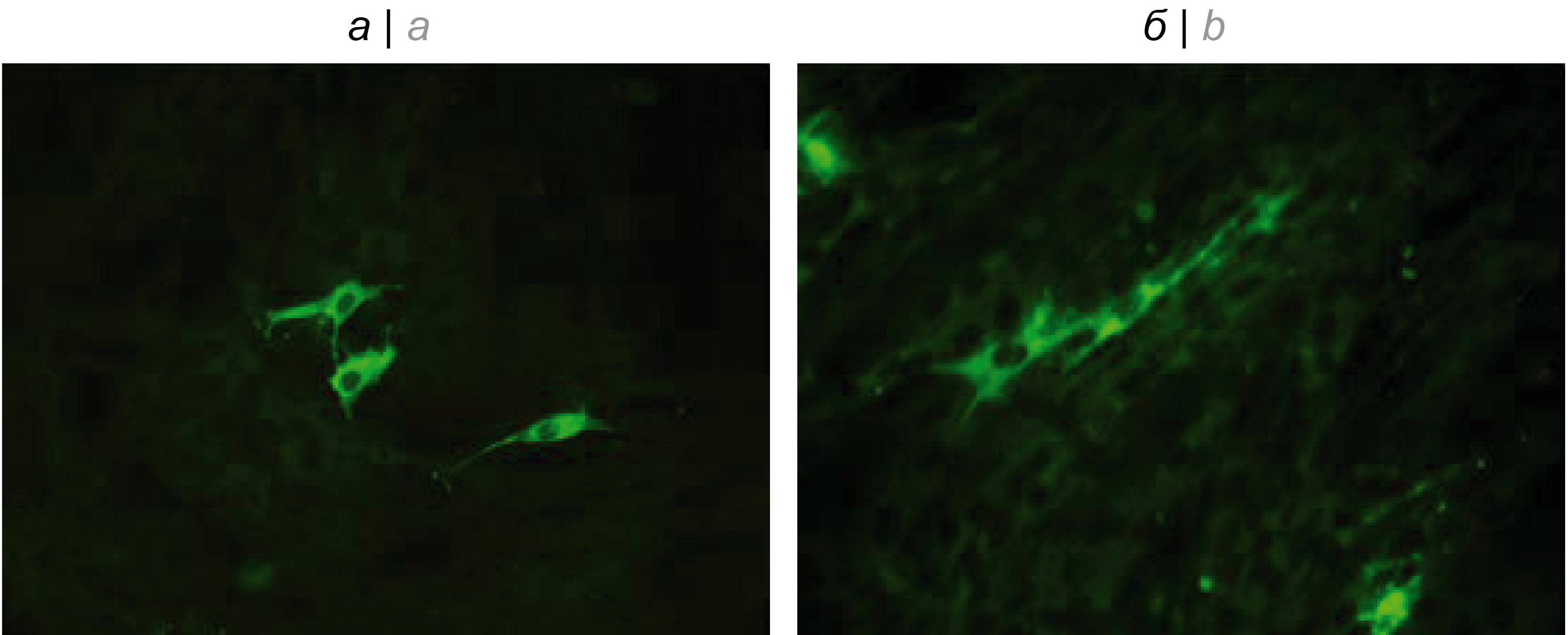 Discussion. The results obtained show the possibility of expressing lentivirus structural proteins in glioblastoma cells (U87) and in normal human macrophages and can be used in the future to study the presentation of antigens in native and functional conformations in appropriate model systems to study the possibility of suppressing HIV infection in viral reservoirs in the CNS.