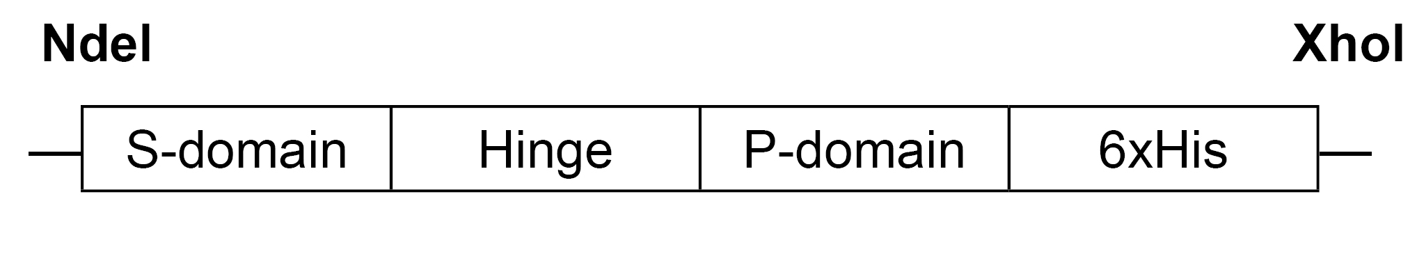 A site for the NdeI restriction endonuclease was added to the beginning of the nucleotide sequence encoding the VP1 protein of the epidemically significant strain of NV genotype GII.4. To the sequence encoding the C-terminal part of the protein, a nucleotide sequence encoding 6 histidines, a stop codon (TAA), and a site for the XhoI restriction endonuclease was added and used for subsequent molecular cloning. The schematic structure of the gene is shown in Figure 1. The resulting sequence was synthesized at Eurogen. The sequence encoding VP1 was transferred to the plasmid pET22b (Thermo Fisher Scientific), which allows high efficiency expression of recombinant proteins in E. coli strains containing DE3 lysogen in the genome [8].