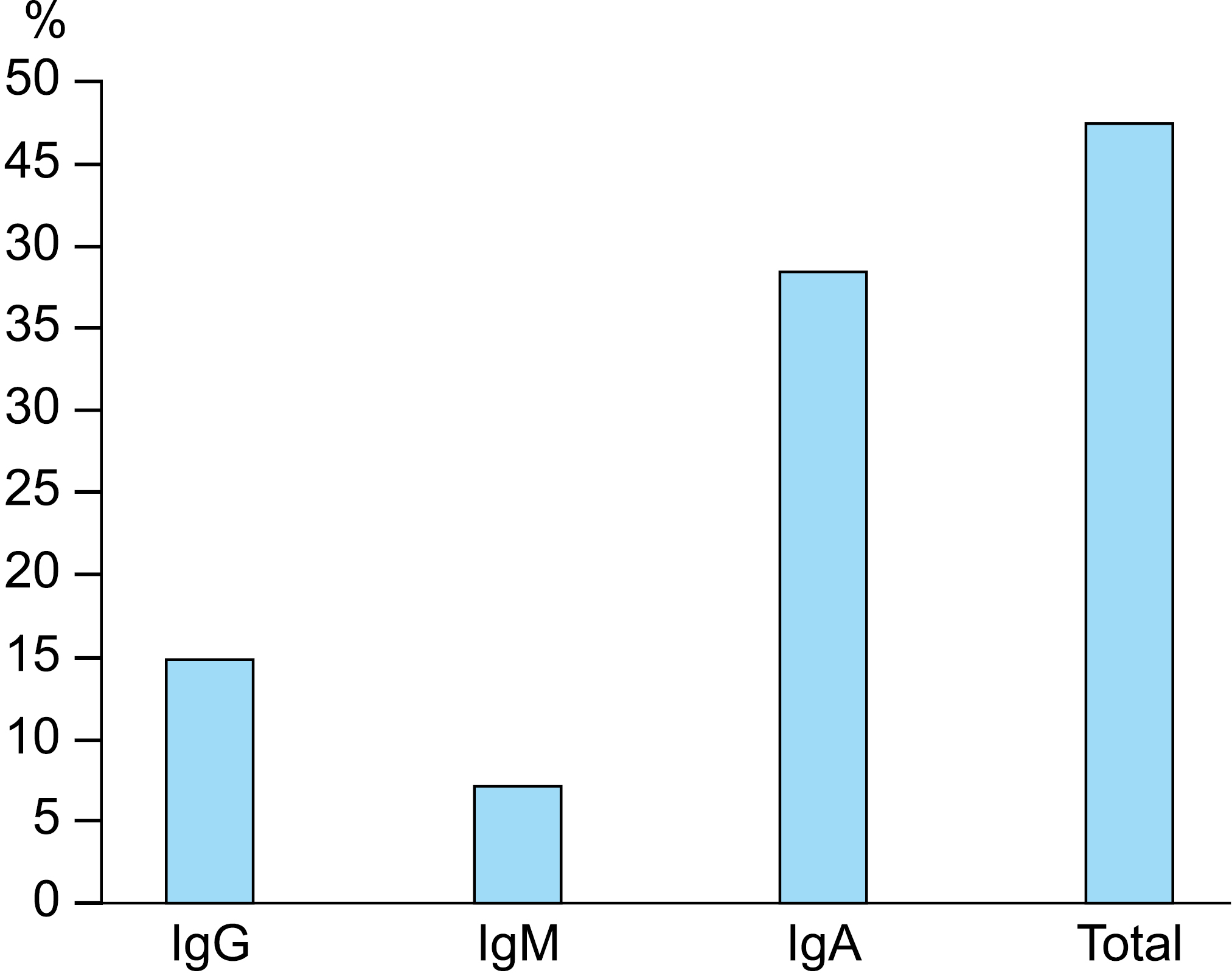 Fig. 4. Detection rate of antibodies of different classes to recombinant norovirus VP1 in the blood of healthy volunteers.