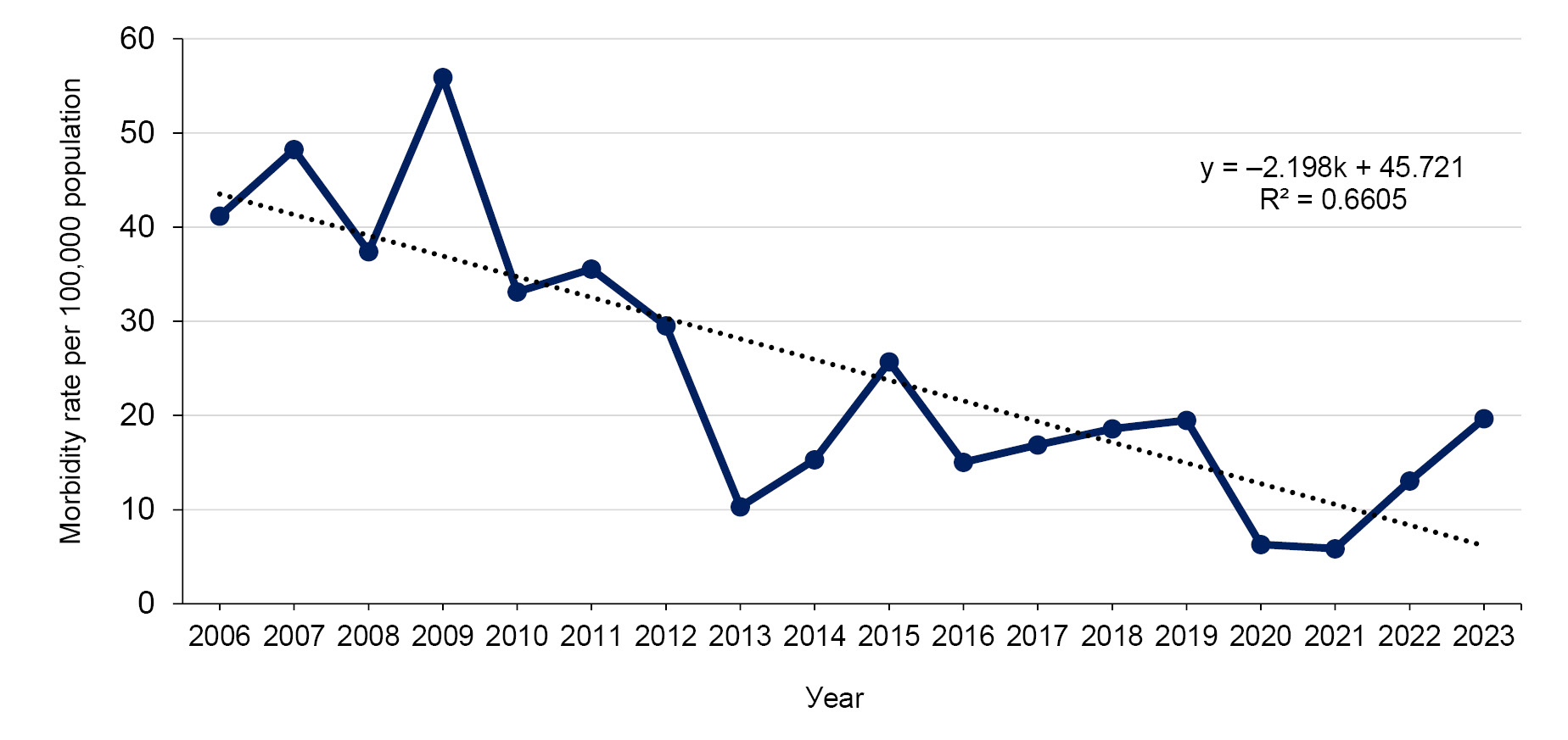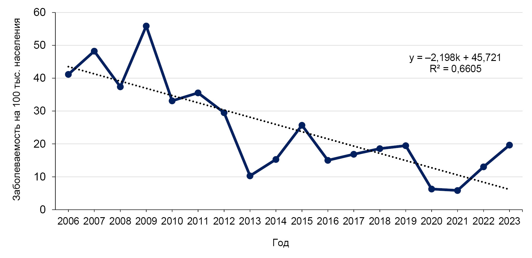 Fig. 1. The dynamics of the Lyme disease incidence in the Kirov region in 2006–2023.