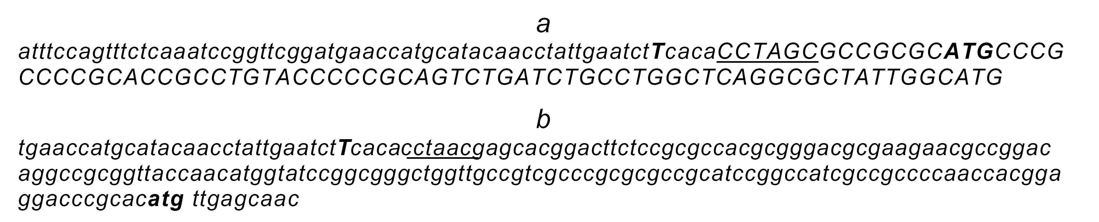 Fig. 3. Sequence fragments of the bvgAS operon of B. pertussis 4MKS Hly– mutant, clone 49 (a), and an insertion mutant of B. pertussis with IS481 integrated into a degenerate cctaac site located upstream the start of transcription of the bteA gene (b) [16].