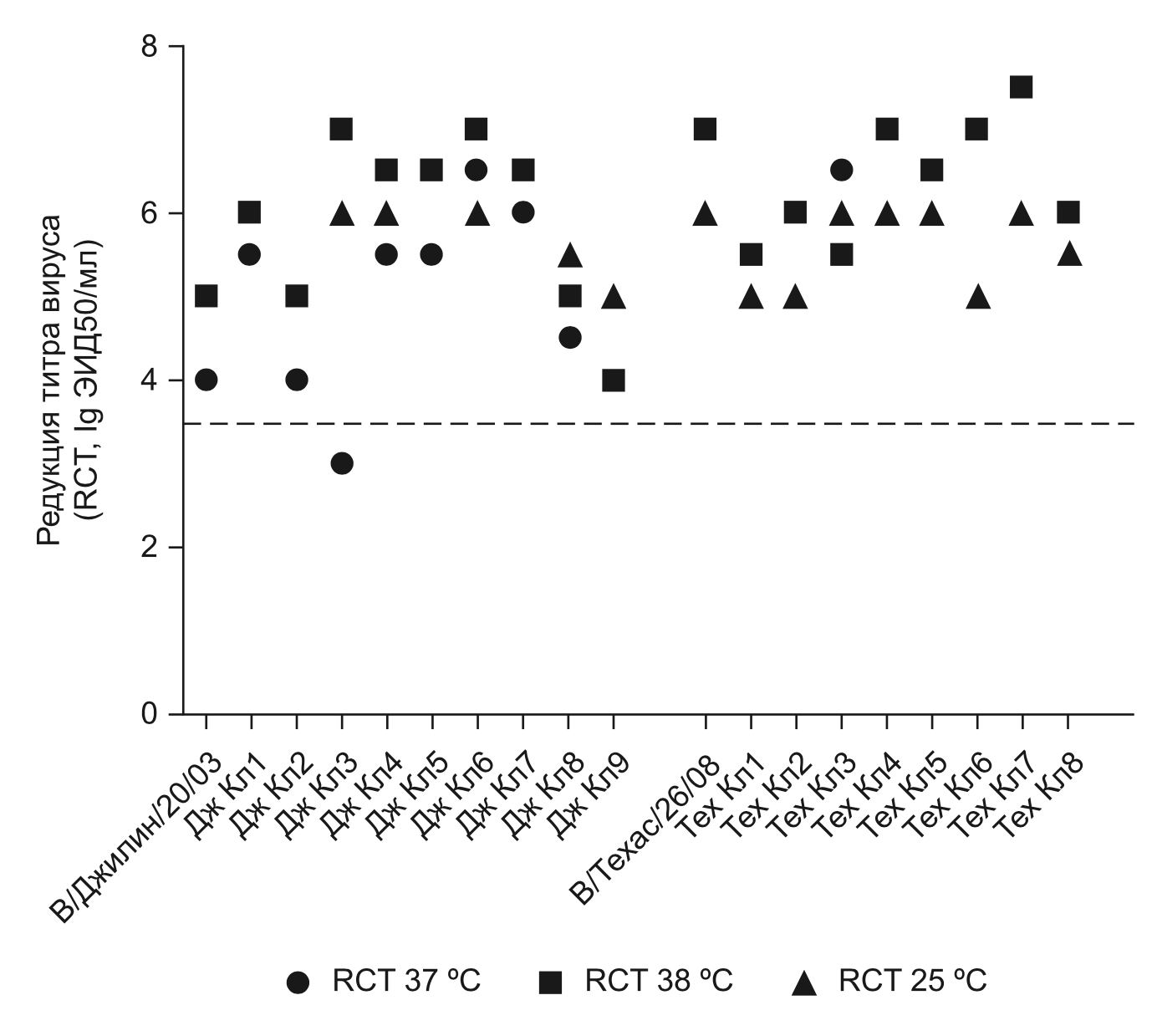 ВВЕДЕНИЕ Вакцинация является эффективным средством профилактики заболеваемости гриппом. Однако успех вакцинации осложнен непрерывной изменчивостью антигенных свойств вирусов гриппа, что приводит к необходимости регулярного обновления состава вакцинного В препарата. Живые гриппозные аттенуированные вакцины (ЖГВ) стабильно демонстрируют безвредность, иммуногенность, высокие защитные свойства для всех возрастных групп населения и способность к формированию коллективного иммунитета [6, 7]. Эти несомненные достоинства, наряду с перекрестной защитой против дрейфовых вариантов вируса гриппа, долговременностью иммунного ответа, неинвазивным способом введения [1, 6, 7], позволили Всемирной организации здравоохранения рекомендовать ЖГВ в качестве эффективного препарата для контроля заболеваемости гриппом. Мировой приоритет в разработке реассортантных ЖГВ принадлежит коллективу отдела вирусологии Института экспериментальной медицины, где проводится регулярная подготовка реассортантных вакцинных штаммов для ЖГВ на основе отечественных доноров аттенуации А/Ленинград/134/17/57 (H2N2) и В/СССР/60/69. Штаммы ЖГВ являются продуктом реассортации актуальных эпидемических вирусов гриппа с генетически стабильными температурочувствительными (ts), холодоустойчивыми (ca) и аттенуированными (att) для человека донорами аттенуации [1]. Антигенная актуальность вакцинного реассортанта обеспечивается наследованием от эпидемического вируса двух генов, кодирующих белки оболочки — HA и NA, а безвредность гарантируется наследованием от донора аттенуации 6 генов, кодирующих внутренние белки (вакцинная формула генома 6:2). Аттенуация обусловлена ограничением распространения температурочувствительного вакцинного вируса за входные ворота инфекции из-за более высокой температуры в нижних отделах респираторного тракта [1, 7]. В метод получения вакцинных реассортантов заложены различия биологических свойств созданных в лаборатории ts/ca/att доноров аттенуации и естественно циркулирующих эпидемических вирусов гриппа. Ко времени разработки метода, в 1970-х годах, циркулирующие вирусы гриппа характеризовались способностью к репродукции при превышающей физиологический оптимум температуре и отсутствием репродукции при пониженной температуре инкубации (non-ts/non-ca фенотип). Эти характеристики считались неотъемлемым признаком патогенных штаммов [14]. На основе принятых за аксиому различий в характеристиках доноров и эпидемических вирусов были подобраны селективные факторы, которые обеспечивают направленный отбор реассортантов с заданными характеристиками. Такими селективными факторами являются пониженная до 25-26о С температура инкубации и культивирование в присутствии гипериммунной сыворотки против донора аттенуации. Температура 25-26о С создает условия приоритетного отбора реассортантов с генами, кодирующими внутренние белки холодоустойчивого донора, а гипериммунная сыворотка против донора способствует отбору реассортантов, наследующих антигены HA и NA от эпидемического родителя [1]. За этапом скрещивания в развивающихся куриных эмбрионах следуют селективные пассажи и несколько этапов клонирования реассортантов. Успех получения вакцинных препаратов напрямую зависит от свойств вступающих в реассортацию вирусов. Донор аттенуации характеризует