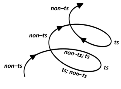 Подобная картина наблюдалась также среди вирусов гриппа А других пандемических циклов и у вирусов гриппа В. Начало пандемического цикла у вирусов гриппа А(H2N2), у ранних представителей вирусов гриппа А(H1N1) и В неизменно характеризовалось циркуляцией температуроустойчивых возбудителей. Дальнейшая эволюция приводила к попеременной циркуляции non-tsи ts-вирусов. Ход эволюции вирусов гриппа по температурной характеристике репродукции представляется как циклическая смена циркулирующих фенотипов: non-ts → non-ts и ts → ts → ts и non-ts → non-ts и т.д. (рис. 2).