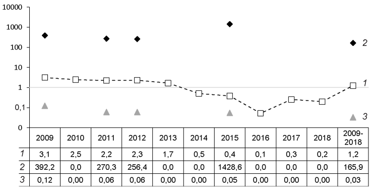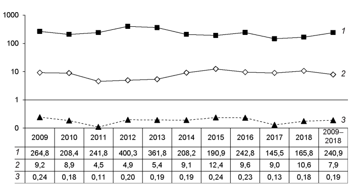 Materials and methods. State Reporting Forms No. 1 “Report on Infectious, Parasitic and Non-Infectious Diseases” for the period of 2009−2018 were studied. The data was processed by the Microsoft Office Excel statistical package.