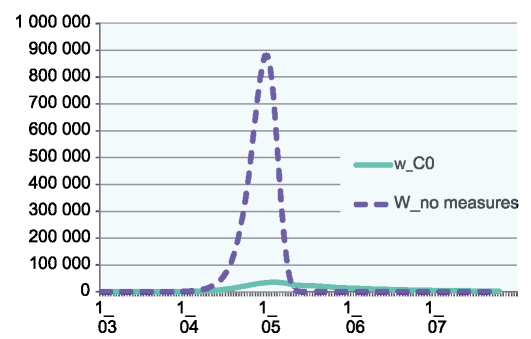 Scenario C1.2 (Fig. 8) | Significant reduction in measures from March 2021 | 300k — 2M — 6.5M |