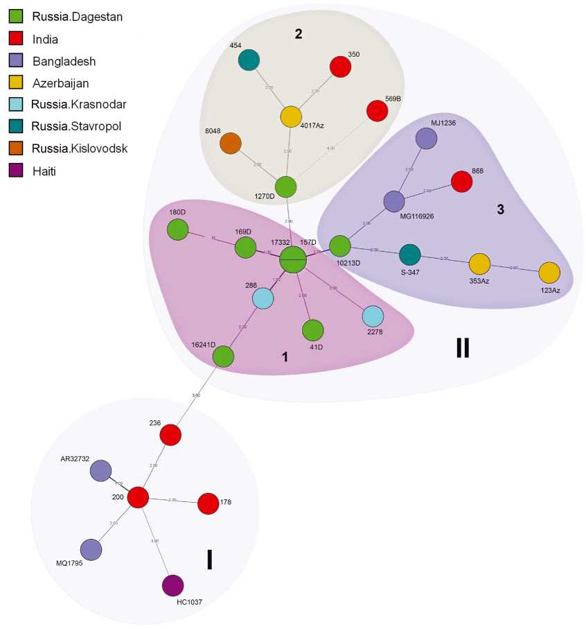 Кроме того, данные MLVA-типирования подтвердили, что случаи холеры на Кавказе являются завозными с территории эндемичных стран и позволили определить наиболее вероятные источники инфекции, что важно для молекулярно-эпидемиологического мониторинга за возбудителем холеры.