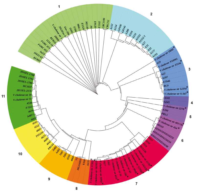 - George C.M., Rashid M., Almeida M., Saif-Ur-Rahman K.M., Monira S., Bhuyian M.S.I., et al. Genetic relatedness of Vibrio cholerae isolates within and between households during outbreaks in Dhaka, Bangladesh. BMC Genomics. 2017; 18(1): 903. https://doi.org/10.1186/s12864-017-4254-9
